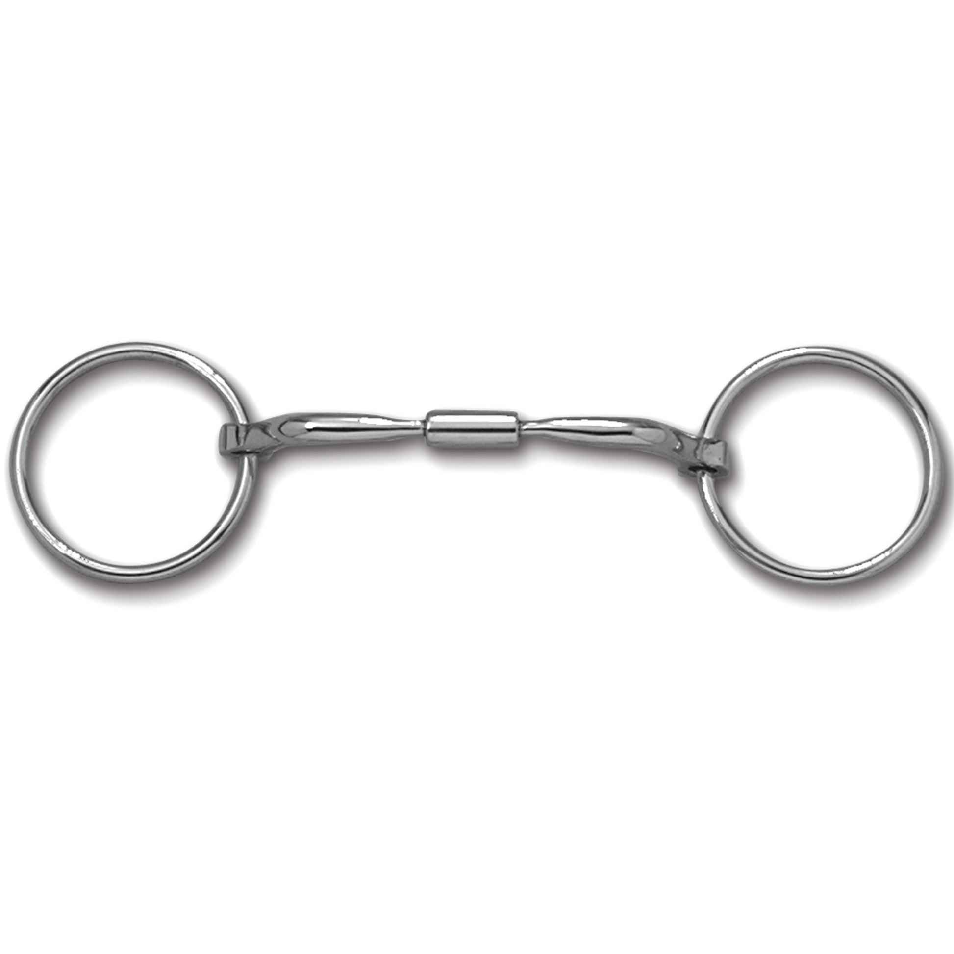 The loose ring is a simple stainless steel "O" shape where both the bridle and mouthpiece have no fixed point of attachment but slide freely around the ring. The loose ring allows a lot of play as the mouthpiece slides freely around the ring.