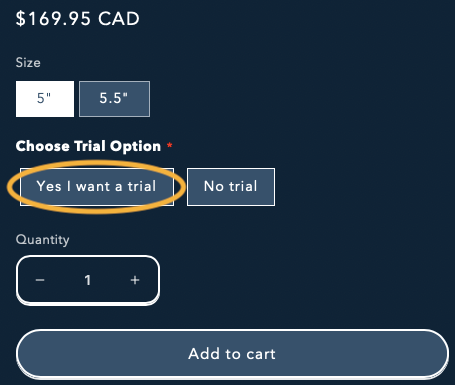 Make sure you select "Yes, I want a trial" before adding the bit to your cart.